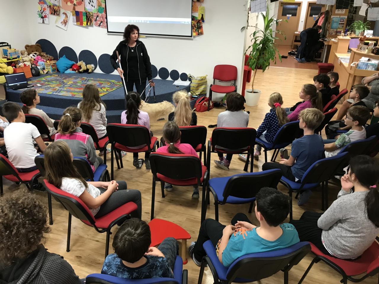 Prezentace výcviku asistenčních psů pro žáky MZŠ Zruč-Senec.